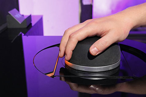 The surface, on which the knob can be moved, is divided into one static element and four parts that can move towards the knob. The moving surface parts represent external limitation and give physical as well as visual feedback about the current situation. When the passengers suggests an action, which is not possible at the moment – because of another car for example – the elevated surface will impede them from being able to move the knob in that direction. Thus, they will instantaneously feel the limitations of the current situation. Moreover, only a glance at the system can quickly provide information about the possibilities at that moment.