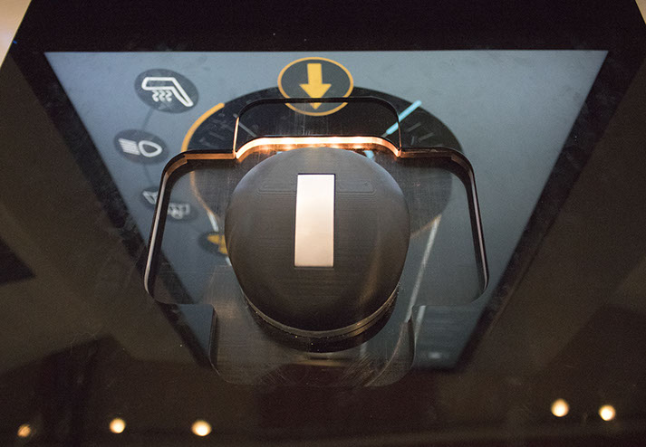 By moving the knob the passengers can give the car the suggestion of what to do next, which the system will execute as soon as possible. Simultaneously, the car keeps the passengers informed about the external obstacles